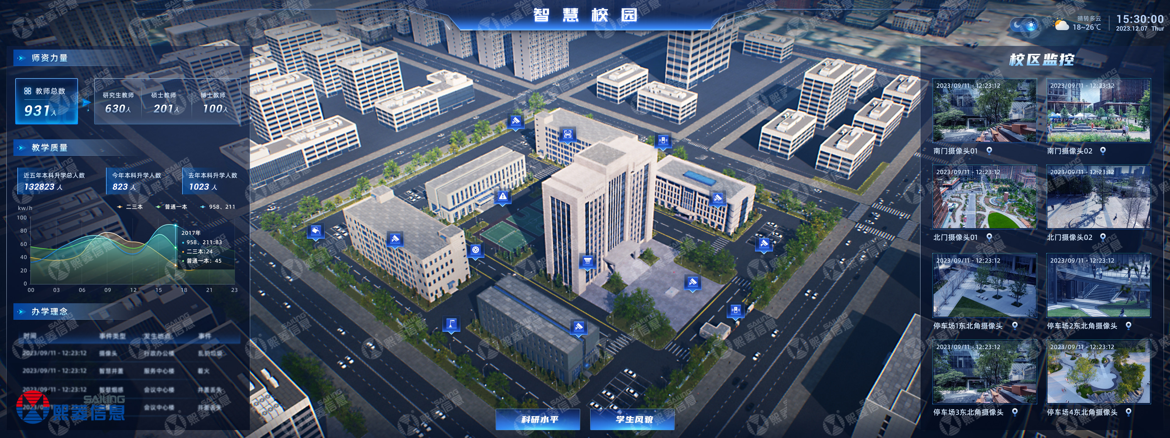 聚焦业务应用,根据当下全国数字新基建实际情况,结合多地政策关于IOC基础应用平台功能建设要点,1xBET信息的智慧校园数字孪生综合管理平台主要围绕区域态势、决策分析、应急指挥三模块集成并丰富应用功能。